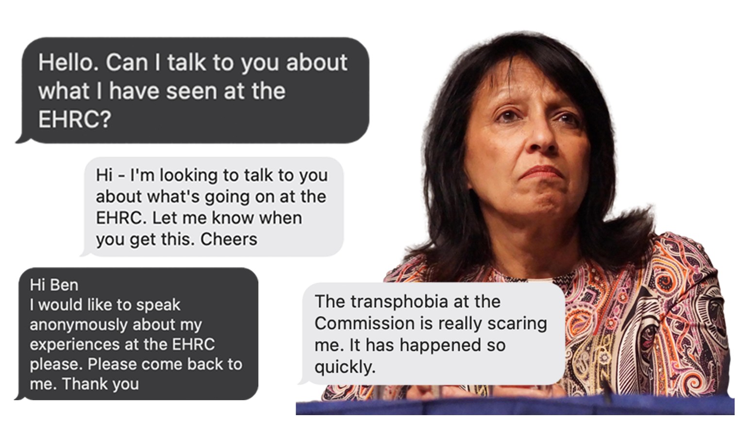 Falkner wasted no time in making the focus of the EHRC’s work being supporting those with “gender critical“ ie transphobic views. In April 2021, the EHRC intervened in the case of Maya Forstater, agreeing with her tribunal appeal judge that her gender critical beliefs were protected under the Equality Act, despite the fact that the original tribunal judge had said her views were "incompatible with human dignity and fundamental rights of others".